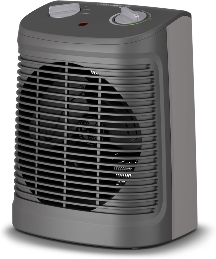 Calefactor bajo consumo 2000 W, 2 velocidades, termostato mecánico función anti-heladas, Silence 44 dBA, modo Eco, ventilador aire frío, fácil transporte —> COMPRAR EN AMAZON